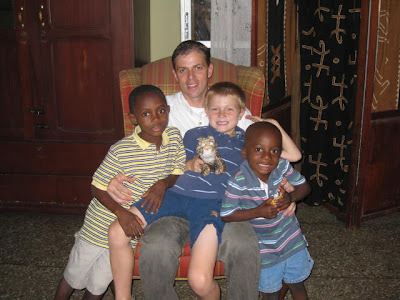 I am tired! John has been having loooooooong work days lately. We are a great team together & I really feel it when my team mate is not here. However, we are still making some good progress. This photo shows how cold the boys were when they first arrived. They were wearing their winter coats in the house & one night they even wore winter hats to bed! (We had the heat on - honest!) Since then they have acclimatized very quickly. At first I kept asking them if they were cold but then I realized they really were feeling OK now. I did NOT adapt to the heat of Ghana that quickly - kids are amazing!